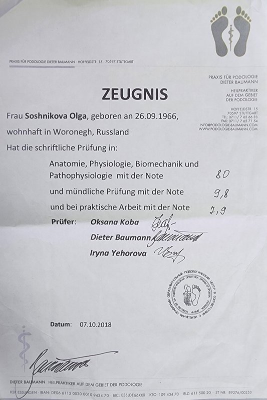 Я, Ольга Сошникова - ведущий специалист студии Подологии города Воронеж. В профессии больше 20 лет.